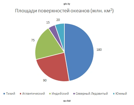 | Название океана | Площадь, млн км² | Сектор диаграммы, градусы |