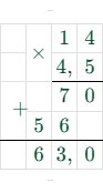 $S_1 = n_1 \times M_1 = 14 \times 4,5 = 63$.