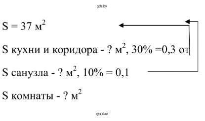 1.128. Площадь однокомнатной квартиры 37 м². Площадь кухни и коридора составляет 30 %, площадь санузла — 10 % площади квартиры. Найдите площадь комнаты. Решите задачу двумя способами. Какой из этих способов проще?