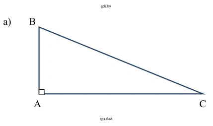 Начертим треугольник ABC, в котором один угол прямой. Пусть $\angle C = 90^\circ$. С помощью транспортира измерим два других угла. В зависимости от чертежа, их значения могут быть разными. Например, у нас могут получиться следующие значения: $\angle A \approx 55^\circ$ и $\angle B \approx 35^\circ$.