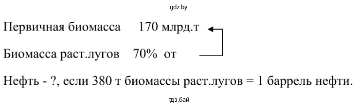 1.38. Биомасса — это шестой по запасам из источников энергии на Земле после горючих сланцев, урана, угля, нефти и природного газа. Ежегодно на Земле образуется около 170 млрд т первичной биологической массы. Биомасса растительности лугов, степей и пашен составляет около 70 % от первичной биомассы. Найдите, сколько баррелей нефти она может заменить, если 380 т дают столько же энергии, сколько один баррель нефти. Ответ округлите до целого числа миллионов.