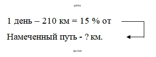 1. Сначала найдем, сколько километров составляет 1% от всего пути. Если 210 км — это 15%, то для нахождения 1% нужно разделить это расстояние на 15: