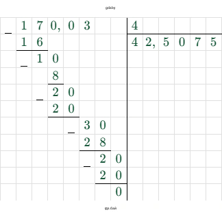 $\frac{170,03}{4} = 42,5075$