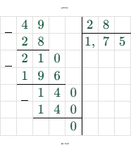 $ \frac{49}{28} \times 100\% = 1,75 \times 100\% = 175\% $
