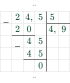 $v_{ср} = \frac{S_{общ}}{t_{общ}} = \frac{24,5 \text{ км}}{5 \text{ ч}} = 4,9 \text{ км/ч}$