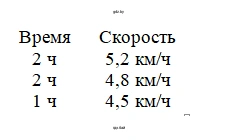 1.7. Пешеход шёл 2 ч со скоростью 5,2 км/ч, 2 ч со скоростью 4,8 км/ч и 1 ч со скоростью 4,5 км/ч. Чему равна средняя скорость пешехода на всём пути?