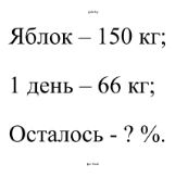1.83. В магазин завезли 150 кг яблок. В первый день продали 66 кг. Сколько процентов яблок осталось продать?
