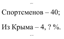 1.92. На соревнование по плаванию приехали 40 спортсменов, из них 4 из Крыма. Какой процент всех спортсменов составляли крымчане?