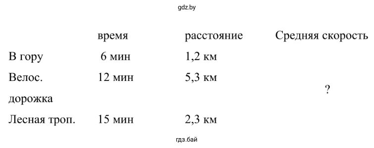 4. Велосипедист ехал 6 мин в гору, преодолев 1,2 км, затем он проехал 5,3 км по велосипедной дорожке, затратив на этот участок дороги 12 мин. По лесной тропинке протяжённостью 2,3 км он ехал 15 мин. С какой средней скоростью ехал велосипедист? Ответ запишите в км/ч.
