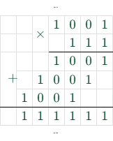 $111 \cdot 1001 = 111 \cdot (1000 + 1) = 111 \cdot 1000 + 111 \cdot 1 = 111000 + 111 = 111111$