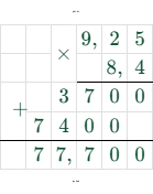 $9,25 \cdot 8,4 = 77,7$