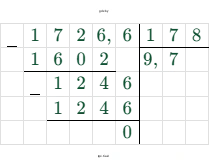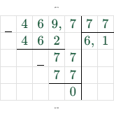 $46,97 : 7,7 = 6,1$