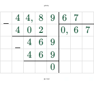 $44,89 : 67 = 0,67$
