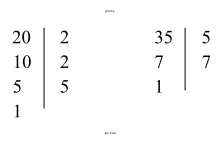 $НОК(20, 35) = 2^2 \cdot 5 \cdot 7 = 4 \cdot 5 \cdot 7 = 140$.