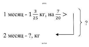 В условии сказано, что за первый месяц ребенок прибавил $1\frac{3}{25}$ кг, что на $\frac{7}{20}$ кг больше, чем за второй. Значит, чтобы найти, сколько ребенок набрал за второй месяц, нужно из прибавки за первый месяц вычесть разницу.