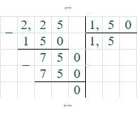 $2,25 : 1,5 = \frac{2,25}{1,5} = \frac{22,5}{15} = 1,5$