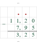 $11,2 - 7,95 = 11,20 - 7,95 = 3,25$