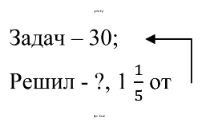 Для того чтобы найти, сколько задач решил Андрей, необходимо общее количество запланированных задач умножить на ту часть, которую он выполнил. В данном случае, нужно найти $1\frac{1}{5}$ от 30.