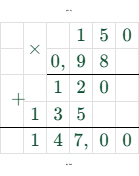 1) 150 • 0,98 = 147 (шт.) – взойдет семян;