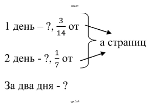 Количество страниц, прочитанных в первый день, составляет $\frac{3}{14}$ от всей повести, то есть $\frac{3}{14}a$.