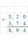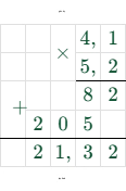б) $110,864 : (4,1 \cdot 5,2) + 3,74$