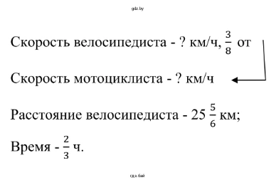 Согласно условию задачи, скорость велосипедиста составляет $\frac{3}{8}$ от скорости мотоциклиста. Это можно записать в виде формулы: