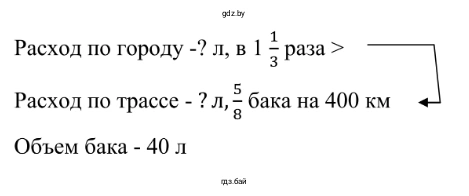 2.468. Расход бензина в автомобиле при пробеге по городу в 113 раза больше, чем при пробеге по скоростной трассе. На сколько километров хватит полного бака бензина обbёмом 40 л при движении по городу, если при движении по скоростной трассе на 400 км пути расходуется 58 бака бензина?