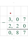 б) Затем вычитание: $3,07 - 2,2 = 0,87$
