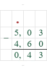 б) Затем вычитание: $5,03 - 4,6 = 0,43$