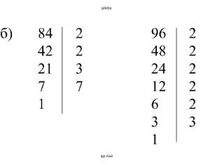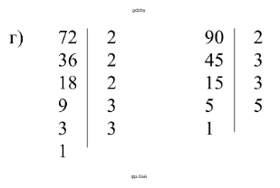 2.58. Разложите каждое число на простые множители, подчеркните общие множители и запишите наибольшее число, на которое делятся числа каждой пары; а) 36 и 48; б) 84 и 96; в) 45 и 60; г) 72 и 90.