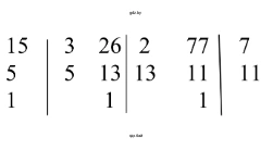 Найдем НОД для чисел 15, 26 и 77. Разложим каждое число на простые множители.
