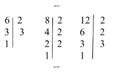Для множителя 3 наибольший показатель — 1 (из разложения чисел 6 и 12).