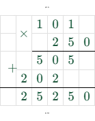 $101 \cdot 250 = (100+1) \cdot 250 = 100 \cdot 250 + 1 \cdot 250 = 25000 + 250 = 25250$