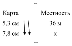 2. Расстояние от дома до колодца на плане – $7,8$ см, что в реальности соответствует $x$ м.