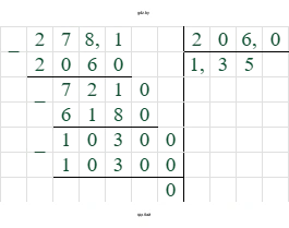 $\frac{2,781}{2,06} = \frac{278,1}{206} = 1,35$