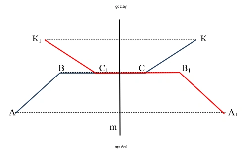 Осью симметрии является прямая, проходящая через среднее звено этой ломаной. Следовательно, осью симметрии будет прямая, содержащая отрезок $BC$. Обозначим эту прямую как $l$.