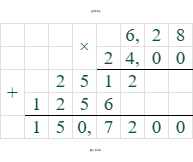 $C = 2 \times 3,14 \times 24$ см = $6,28 \times 24$ см = $150,72$ см.