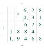 $C = 2 \times 3,14 \times 0,31$ дм = $6,28 \times 0,31$ дм = $1,9468$ дм.