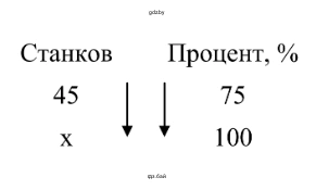 Составим пропорцию, где общее количество станков $x$ — это 100%, а 45 станков — это 75%.