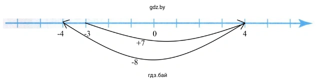 2. Из точки -3 прибавляем 7, то есть перемещаемся на 7 единиц вправо. $-3 + 7 = 4$. Попадаем в точку 4.