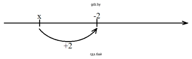 г) В уравнении $x + 2 = -2$ мы начинаем движение из неизвестной точки $x$, смещаемся на 2 единицы вправо (потому что прибавляем 2) и оказываемся в точке $-2$. Чтобы найти начальную точку $x$, необходимо из конечной точки $-2$ сместиться на 2 единицы влево (то есть вычесть 2). $x = -2 - 2 = -4$.