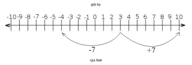 Ищем числа, которые находятся на расстоянии 7 единиц от числа 3. Для этого мы прибавляем и вычитаем 7 из 3.