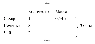 1) 3,04 – 0,54 = 2,5 (кг) – весят печенье и чай;