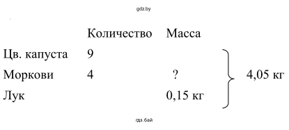1) 4,05 – 0,15 = 3,9 (кг) – весят капуста и морковь;