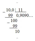 1. Переведем дробь в десятичную, разделив 10 на 11.