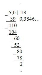 1. Переведем обыкновенную дробь в десятичную, разделив 5 на 13: