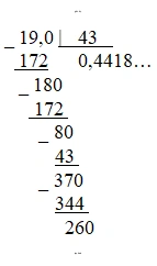 1. Переведем обыкновенную дробь в десятичную, разделив 19 на 43: