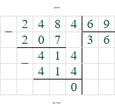 1. Первым действием выполним деление в скобках: $248,4 : 6,9$. Чтобы разделить на десятичную дробь, перенесем запятую в делимом и делителе на один знак вправо, чтобы делитель стал целым числом: $2484 : 69 = 36$.