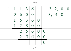 1. Первое действие - деление: $-11,136 : 3,2$. Результат будет отрицательным. Чтобы выполнить деление, перенесем запятую: $111,36 : 32 = 3,48$. Таким образом, $-11,136 : 3,2 = -3,48$.