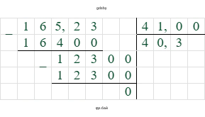 2. Второе действие - деление: $16,523 : 4,1$. Перенесем запятую: $165,23 : 41 = 4,03$.
